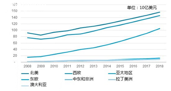 预计在2013-2018年期间将保持平稳增长,并由亚太地区拉动增长。